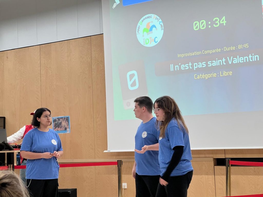 Après un échauffement collectif, les équipes se sont lancées dans des improvisations déjantées sur les thèmes annoncés par l’arbitre. De « Il n’est pas sain(t) Valentin » au « Serial lover » en passant par « Quand l’amour rime avec topinambour », « Valentin TV », « La flèche de trop », etc., les joueurs se sont donnés corps et âmes pour construire des histoires pleines d’humour et de folie.