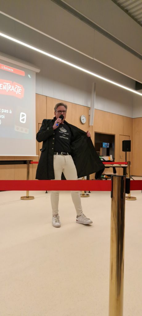 Ce vendredi 27 mars a eu lieu le match retour de la IDJoC contre L’Entracte. Plus de cent spectateurs étaient présents, à tel point qu’il a fallu ajouter des chaises! Ce public a mis une sacrée ambiance, bien encouragé par DJ Bastos aux commandes de ses platines après sa géniale animation pédagogique du bon usage du carton de vote.