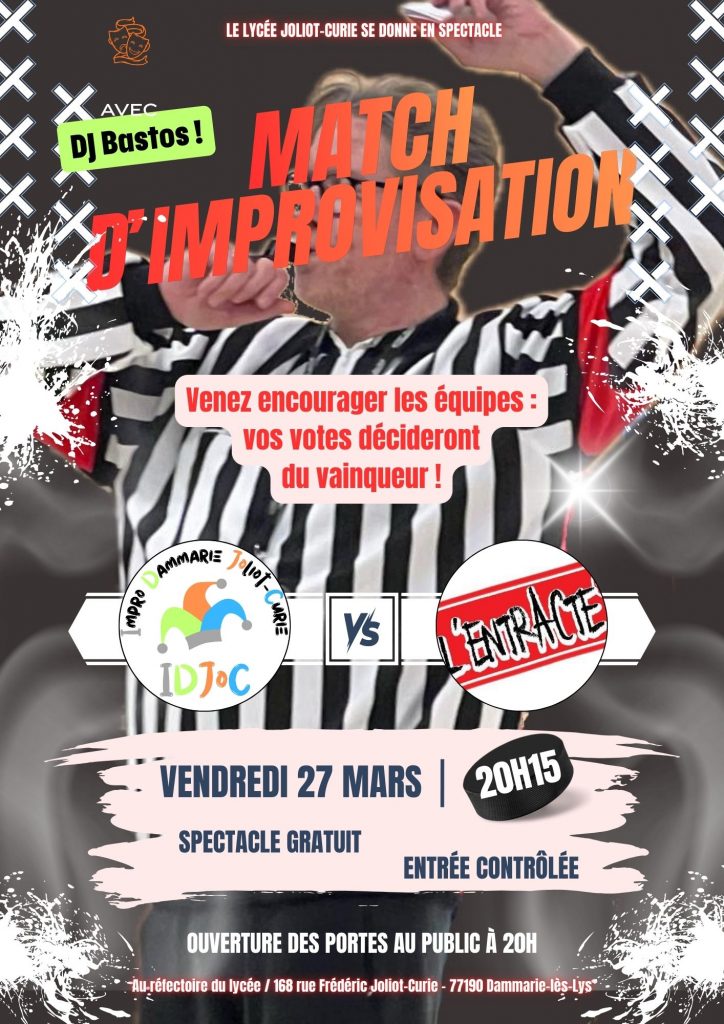 Les deux équipes et leurs coachs remercient une nouvelle fois la direction qui autorise la tenue de ces spectacles, les équipes de maintenance et du réfectoire pour leur indispensable aide à la mise en place du réfectoire, les membres de l’équipe d’impro Arts & Ficelles (staff arbitral, DJ) ainsi que les élèves de la filière des métiers de la sécurité et leur professeur qui permettent le bon déroulé du match et l’encadrement du public en toute sérénité.
