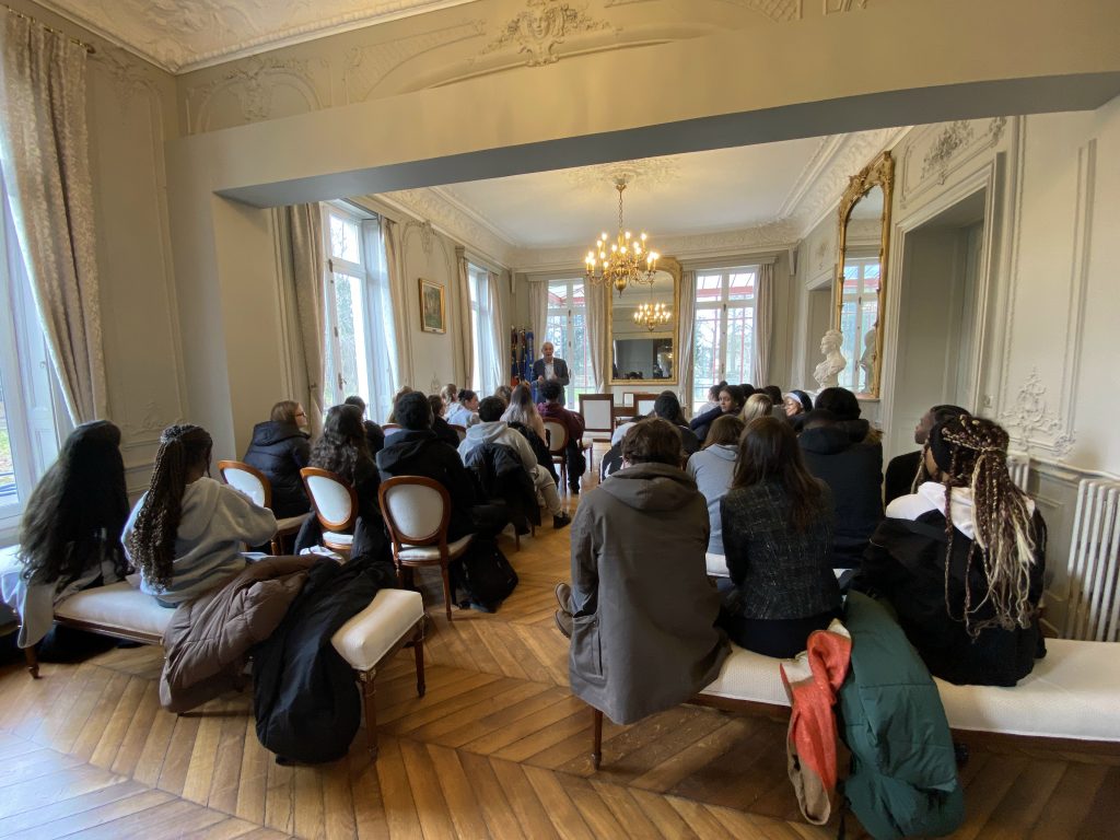 Le 9 janvier 2026, les élèves de TG6 se sont rendus à la mairie de Dammarie-lès-Lys pour rencontrer le maire Monsieur Gilles BATTAIL, deux heures durant. Ils ont eu la chance d’être reçus dans la nouvelle mairie désormais située au château Soubiran, avenue Henri Barbusse, et plus particulièrement dans la salle de célébration des mariages.